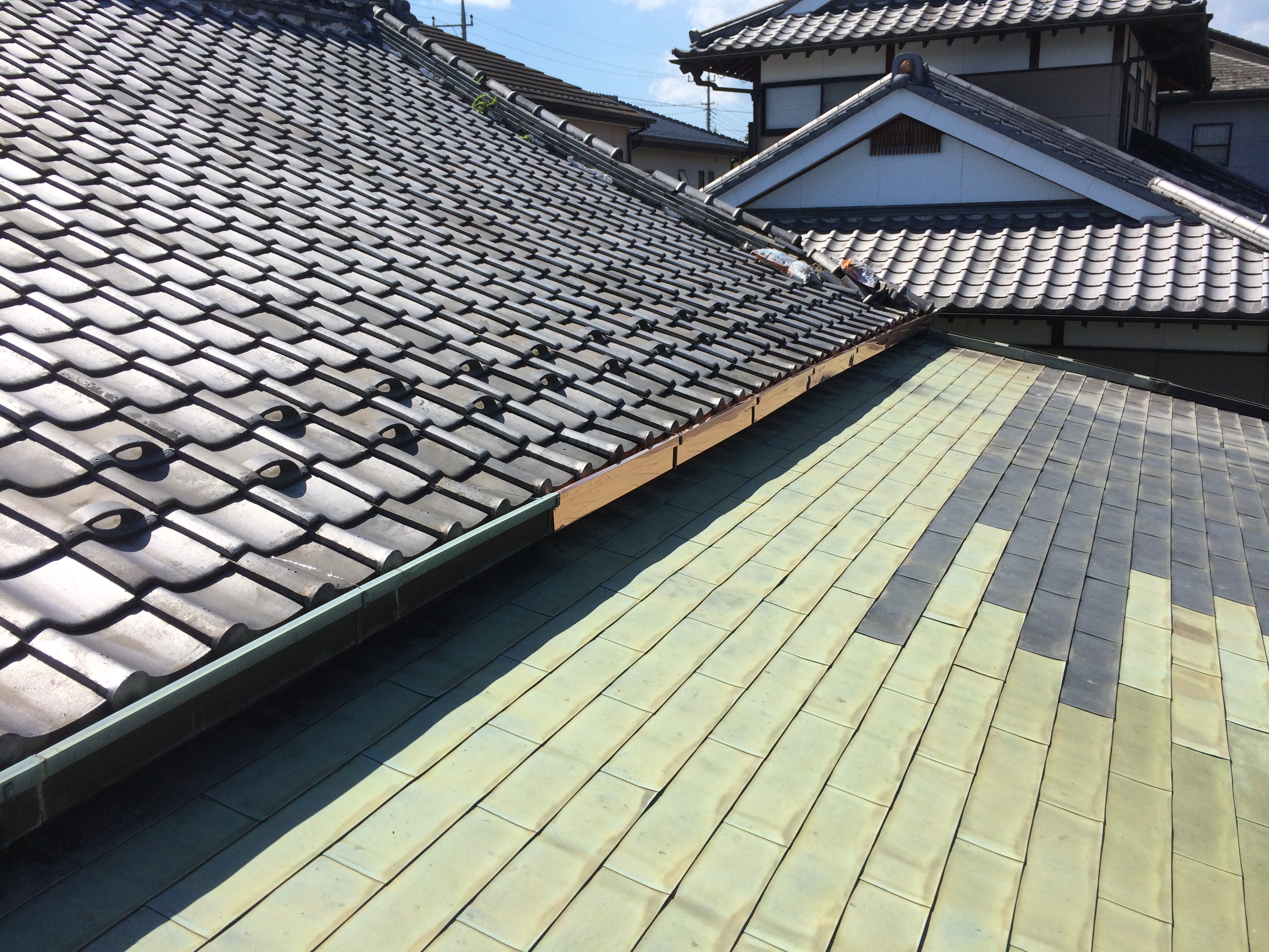 交換した部分は、まだギラギラしていますが緑青が出て色が変わり馴染んできます。