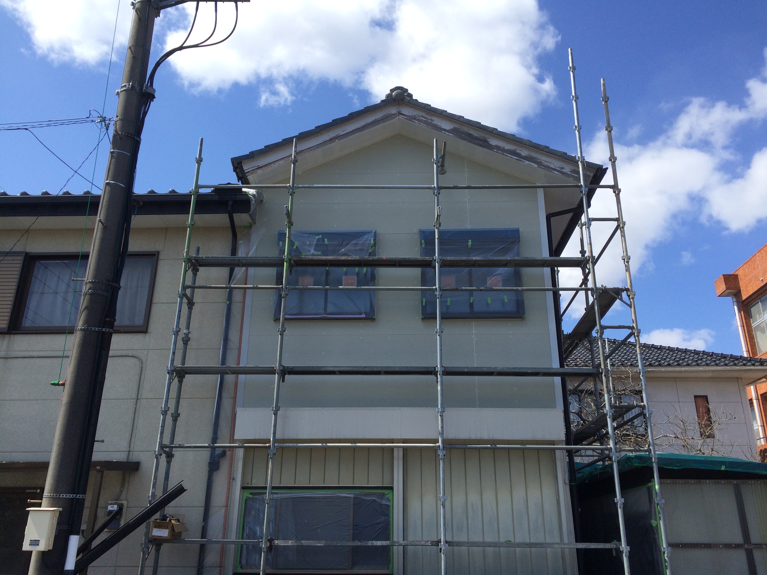 外壁の改修工事と雨樋の一部交換をさせていただきました。