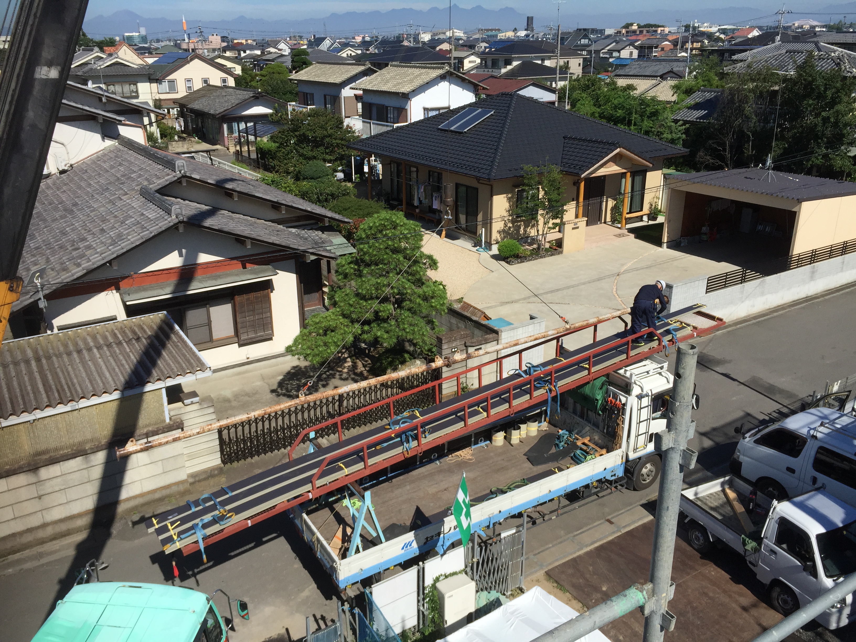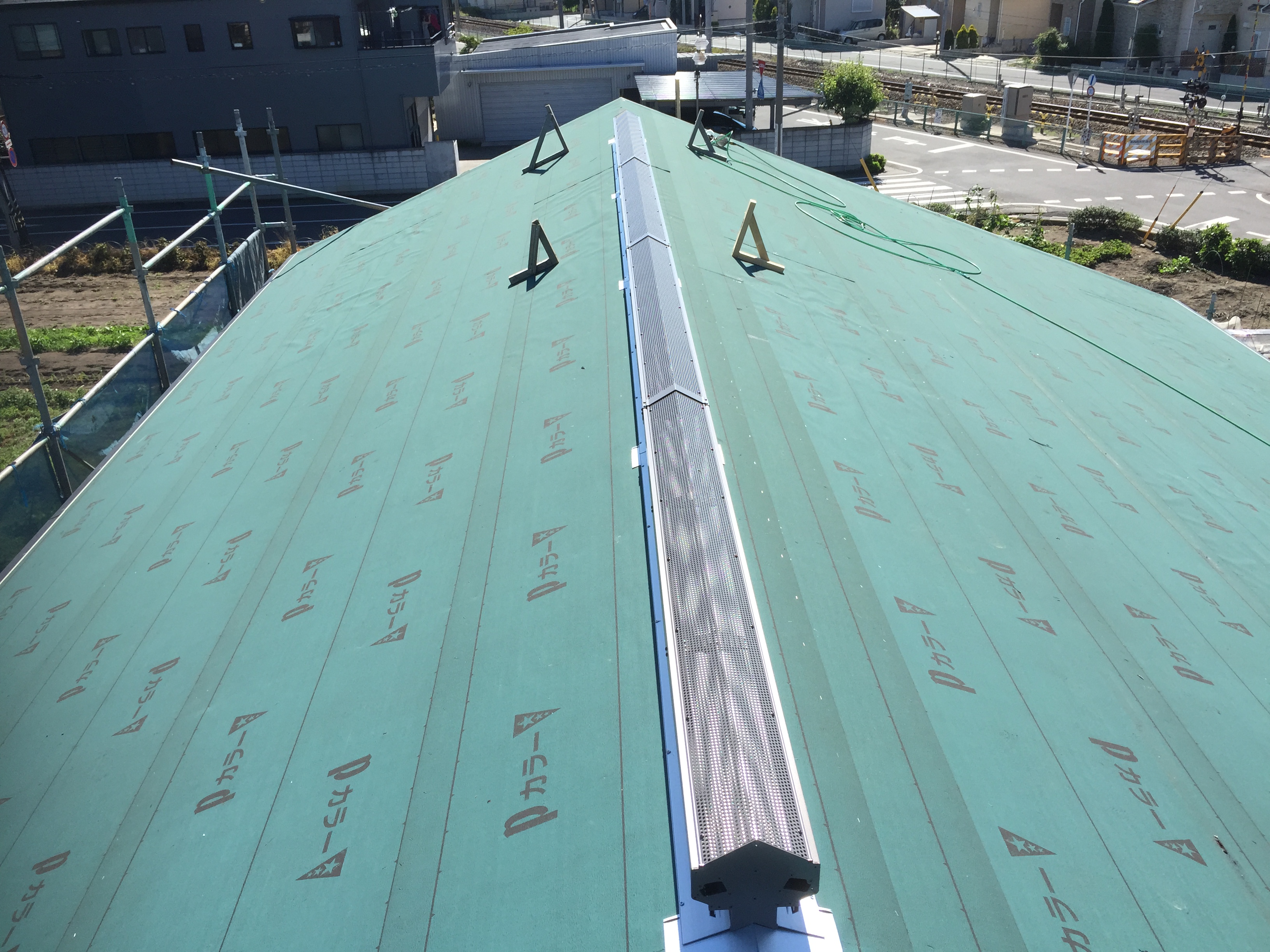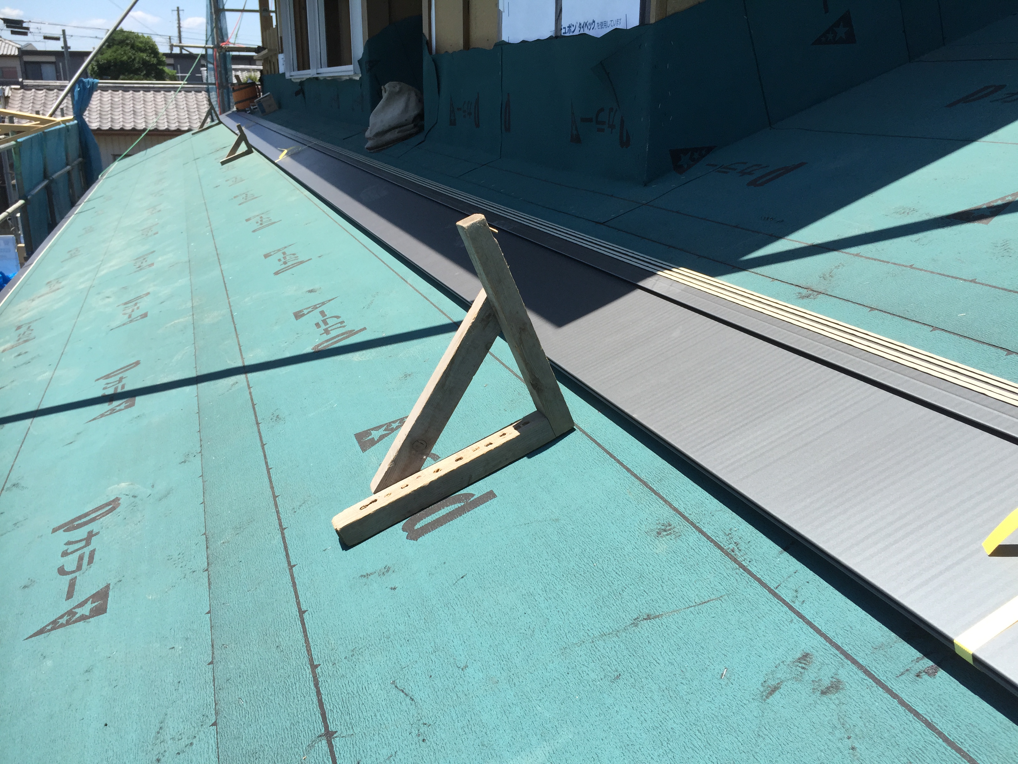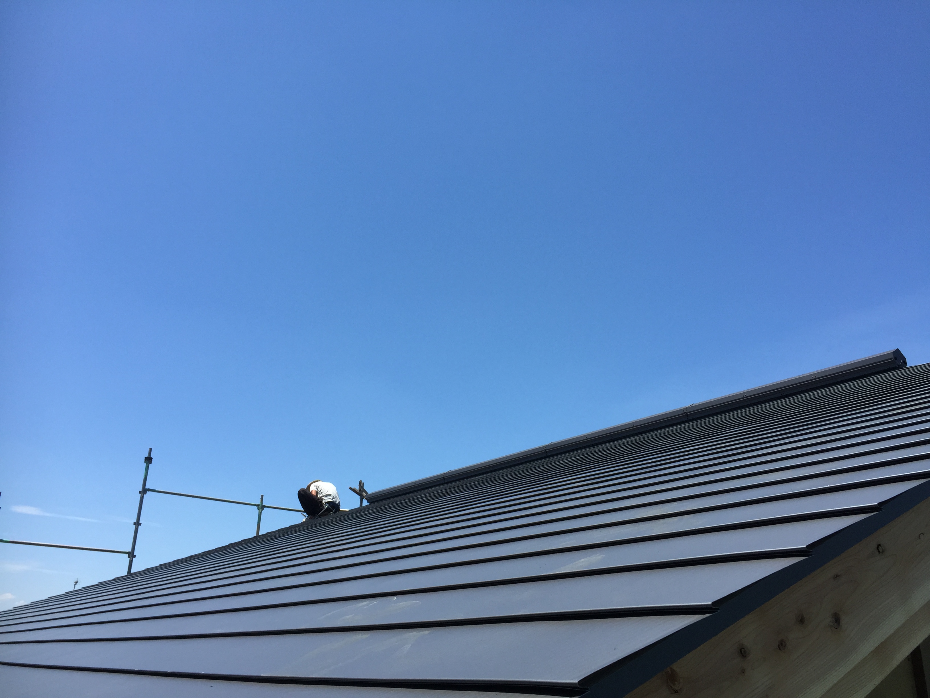 そんな中・・・私たちは伊勢崎市で屋根に上がり作業をしていました。汗汗汗