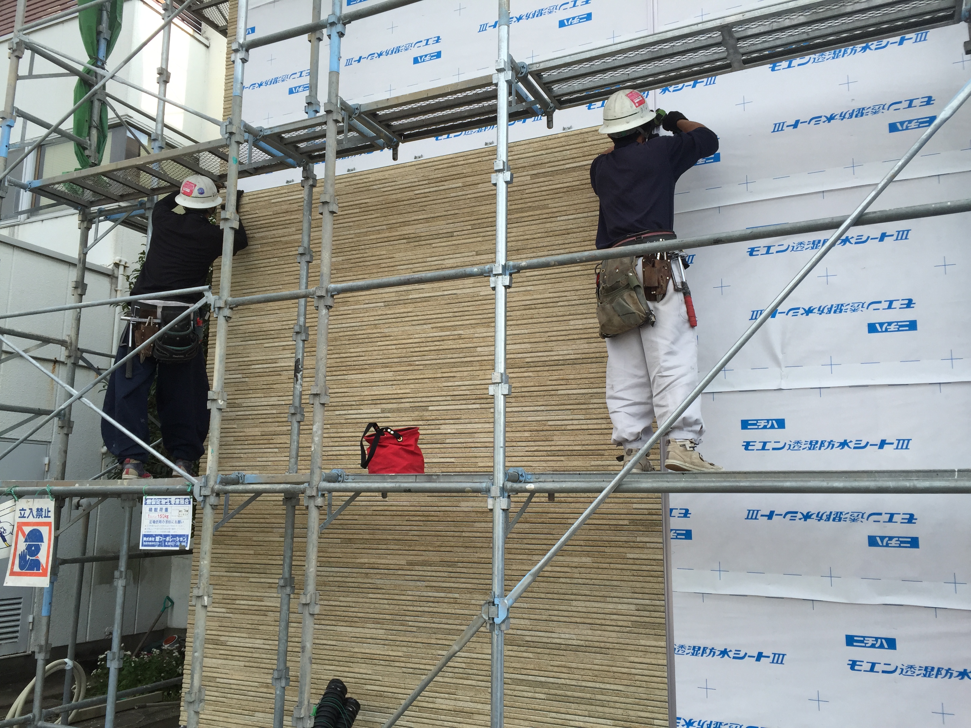 サイディングを貼る時は目地をまっすぐズレないようにします。