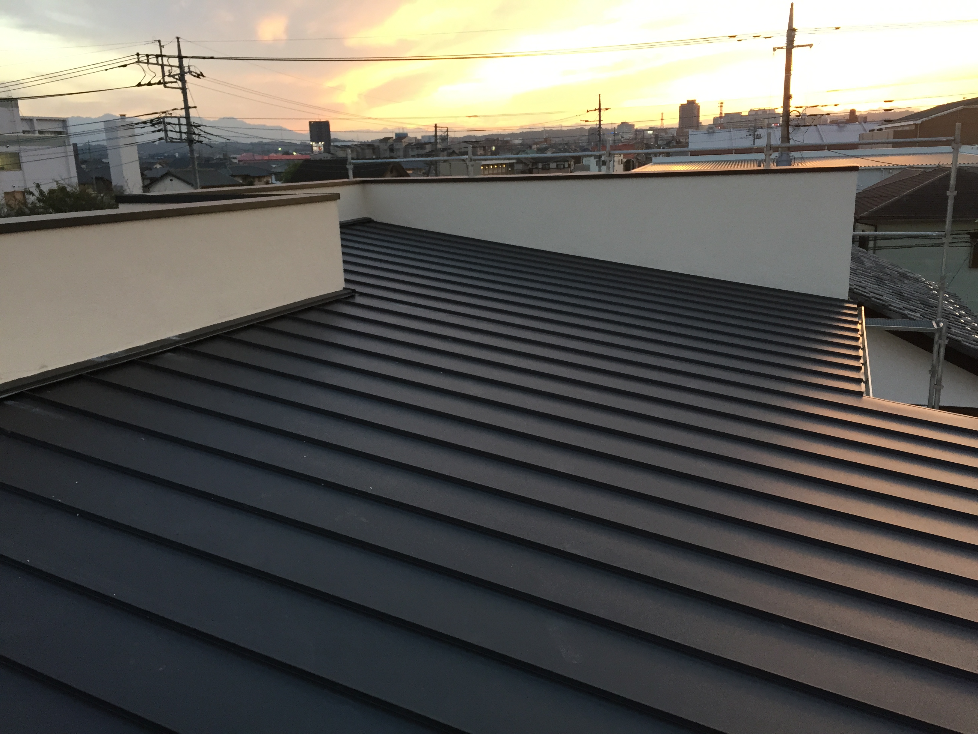 住居とガレージの新築工事で屋根・笠木・雨樋を施工させていただきました。